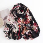 Tibetan Blooming Rose Peony Flower Print Shawl Fall Winter Cozy Warm Scarf Wrap