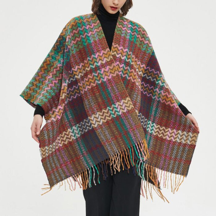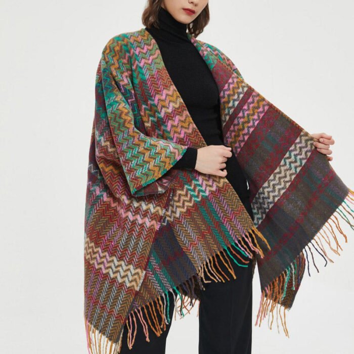 Tibetan Shawl Colorful Wavy Line Tassels Winter Cozy Travel Scarf Wrap