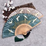 Vintage Cloud Crane Pattern Handheld Bamboo Folding Fan – Your Fluttering Canvas of Celestial Grace