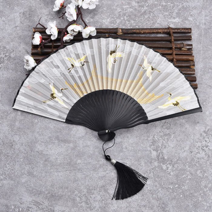 Vintage Cloud Crane Pattern Handheld Bamboo Folding Fan