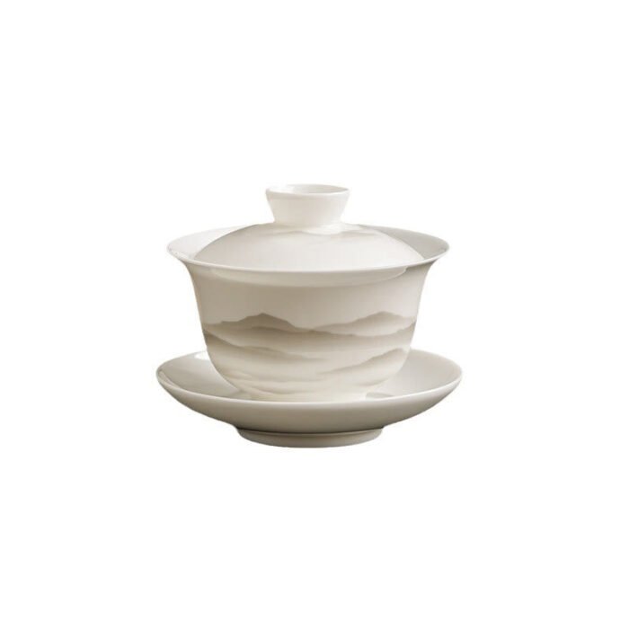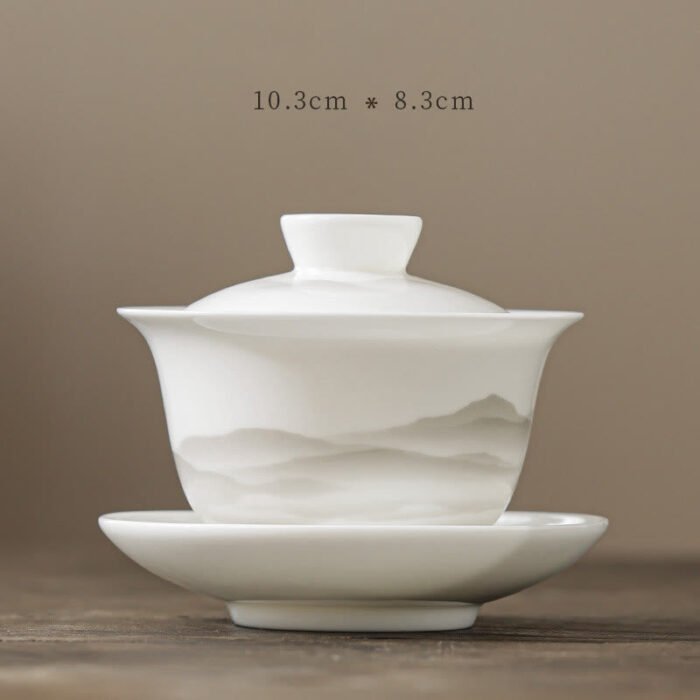 Vintage Ink Painting Mountain White Porcelain Ceramic Gaiwan Sancai Teacup Kung Fu Tea Cup And Saucer With Lid Tea Utensil Teapot – Your Liquid Scroll of Poetic Stillness