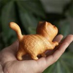Mini Thuja Sutchuenensis Boxwood Cute Cat Kitten Carved Prosperity Decoration – Your Whiskered Guardian of Ancient Blessings