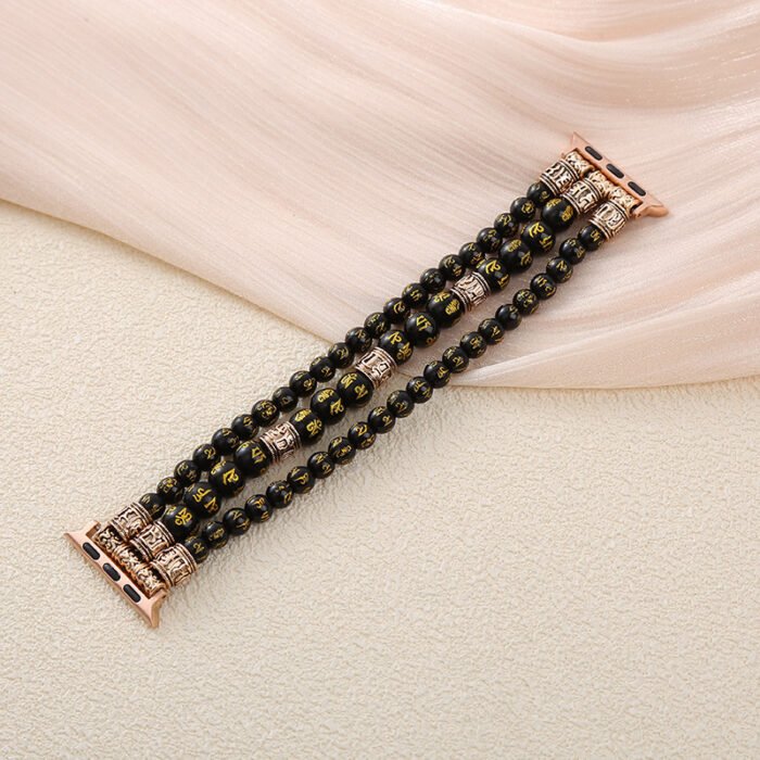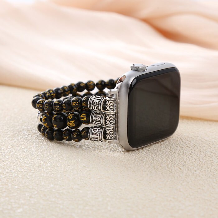 “Om Mani Padme Hum” Agate Stretch Beaded Apple Watch Band – Sacred Elegance for Mindful Living