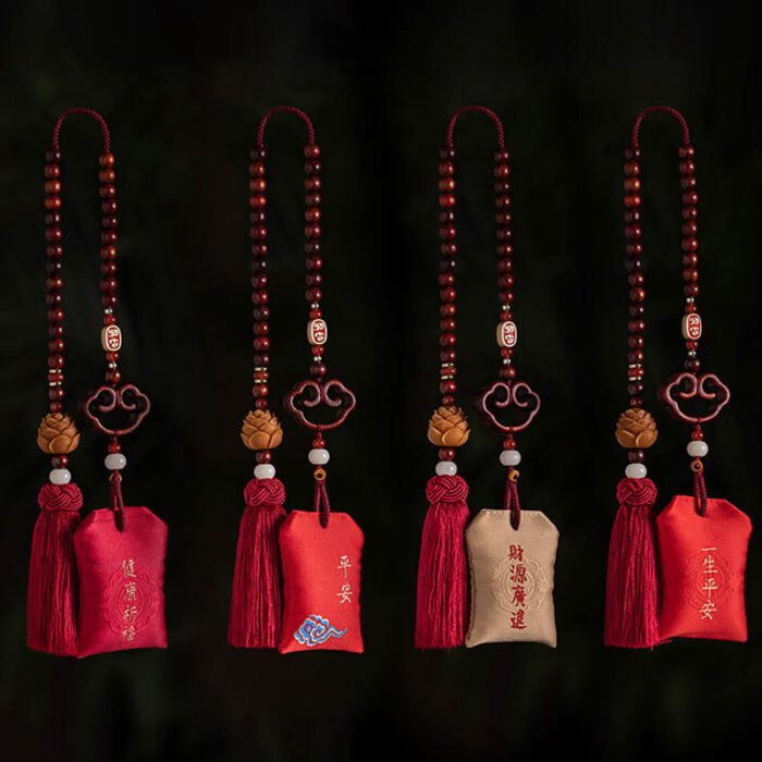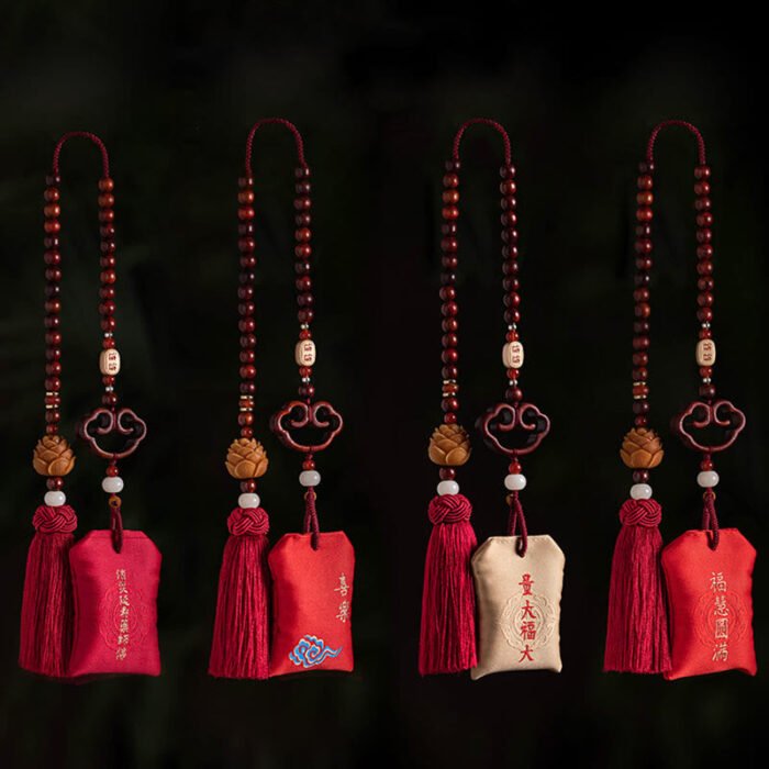 Tibetan Small Leaf Red Sandalwood Lotus Cinnabar Sachet Protection Tassel Car Hanging Decoration – Your Fragrant Sanctuary of Sacred Journeys